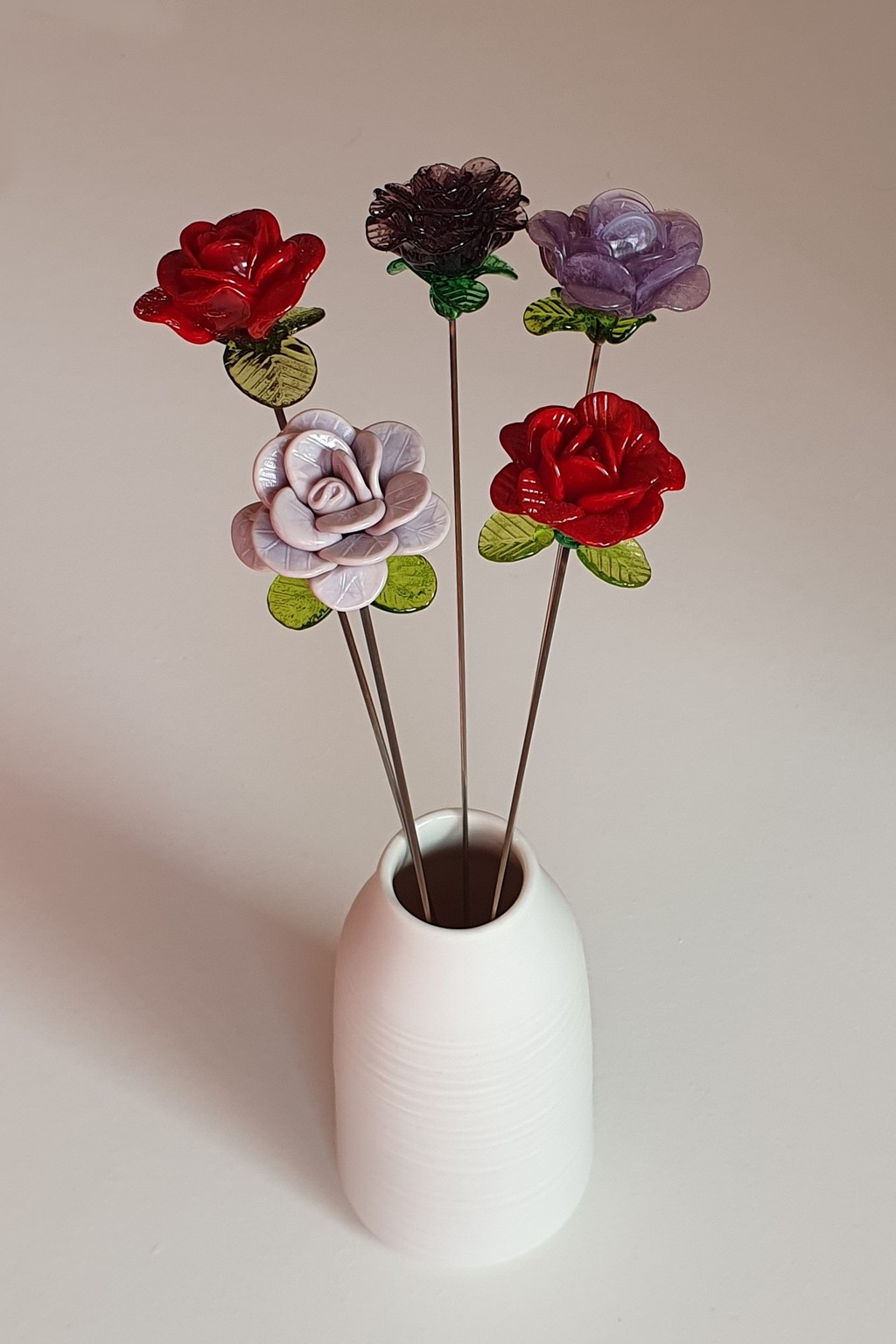- Notez que contrairement aux fleurs en verre soufflé, qui sont creuses, les fleurs en verre filé sont en verre plein.