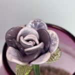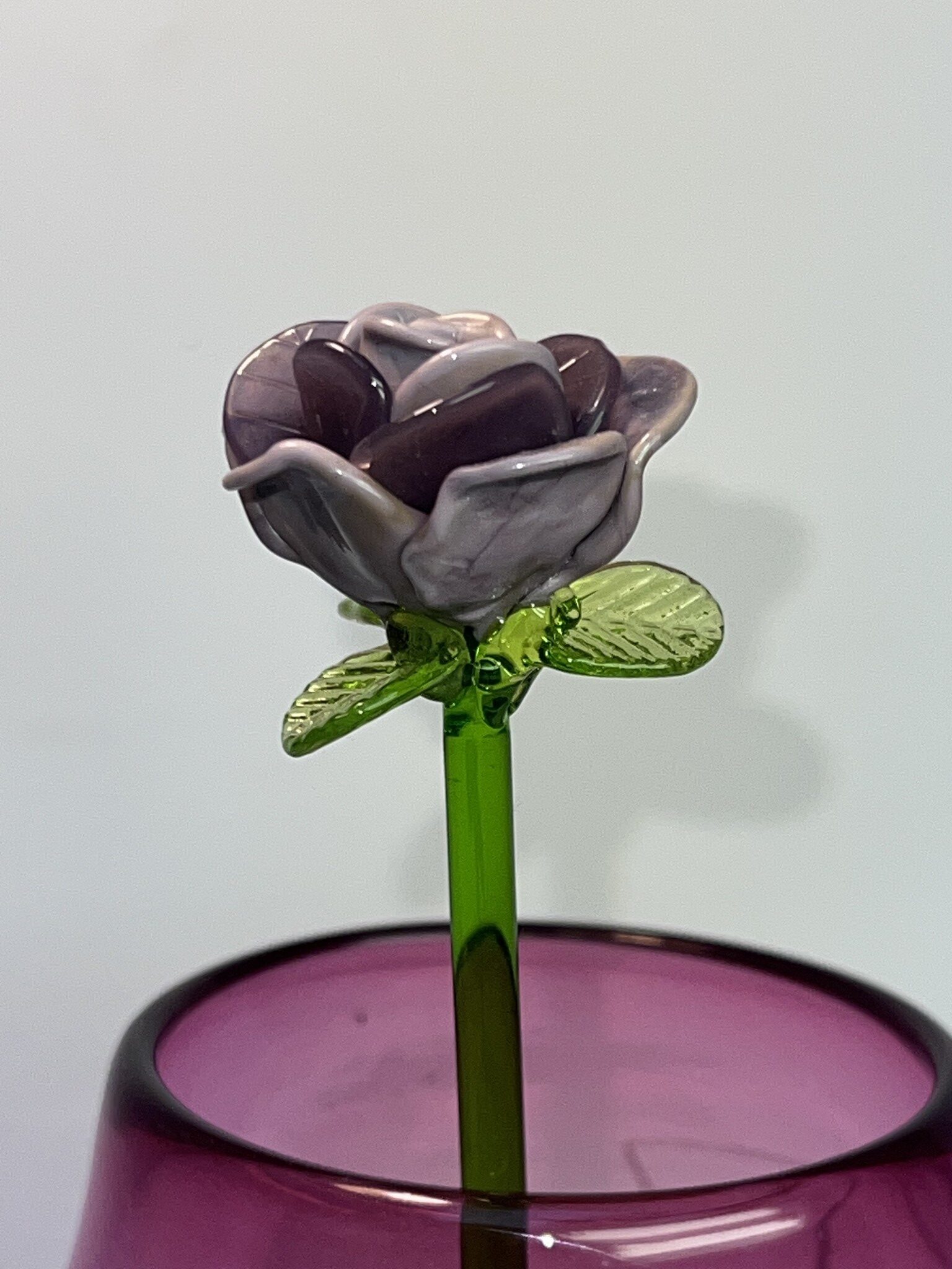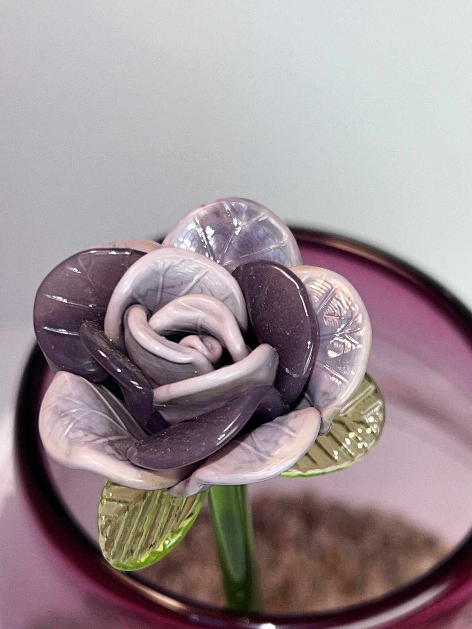 Cadeau rose éternelle, couleurs violet et améthyste très clair, sur tige en verre