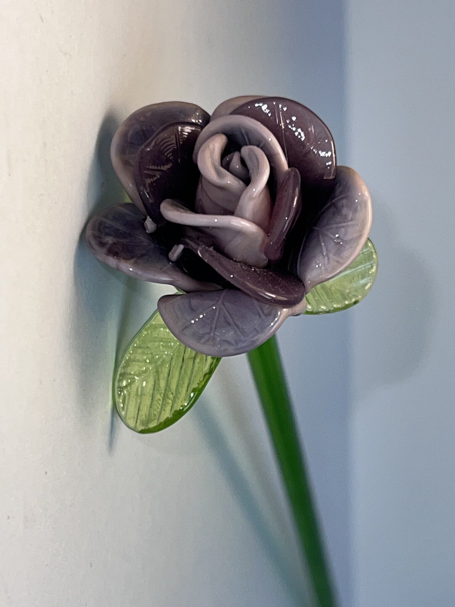 - Notez que contrairement aux fleurs en verre soufflé, qui sont creuses, les fleurs en verre filé sont en verre plein.