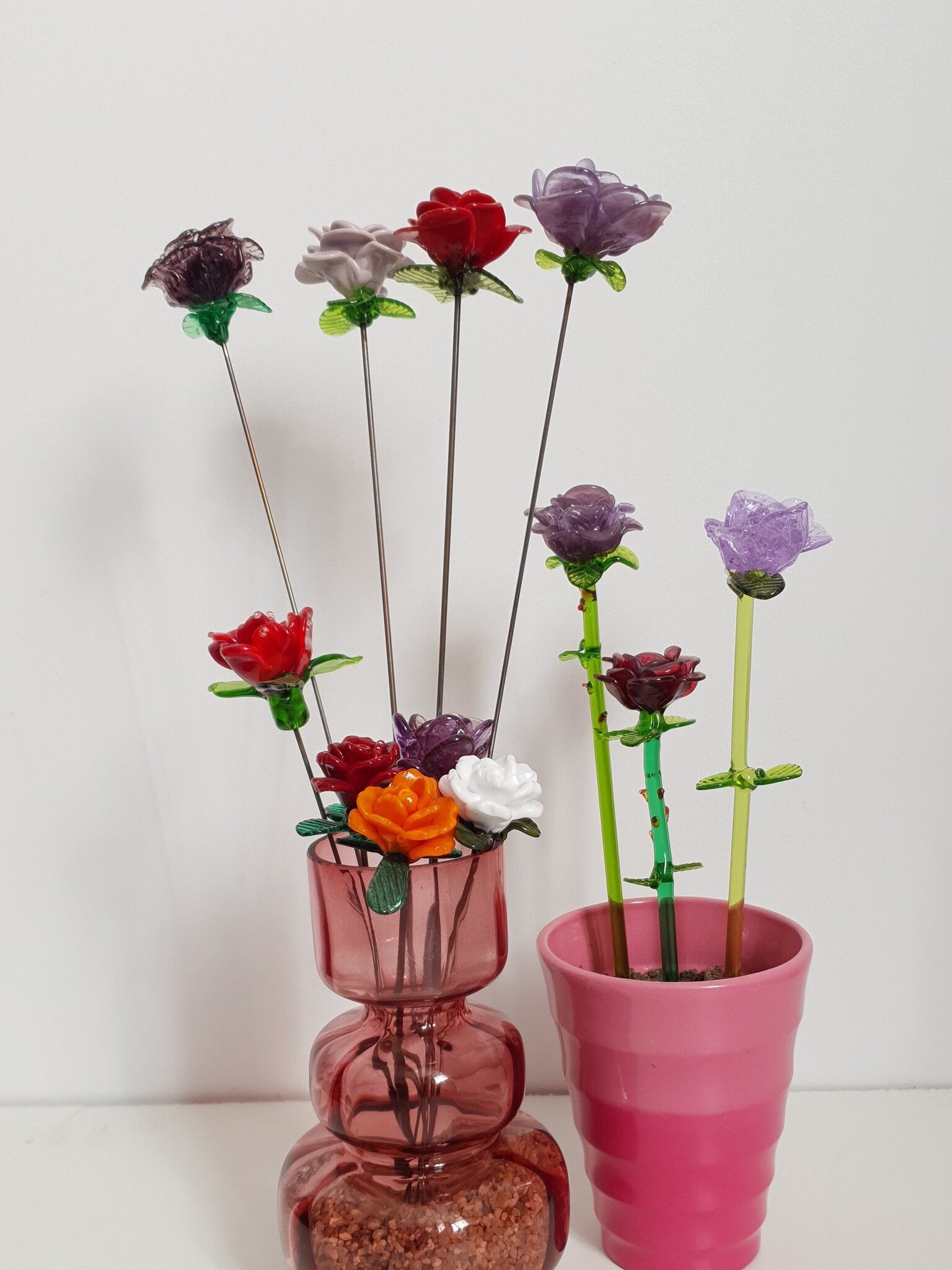 - Notez que contrairement aux fleurs en verre soufflé, qui sont creuses, les fleurs en verre filé sont en verre plein.