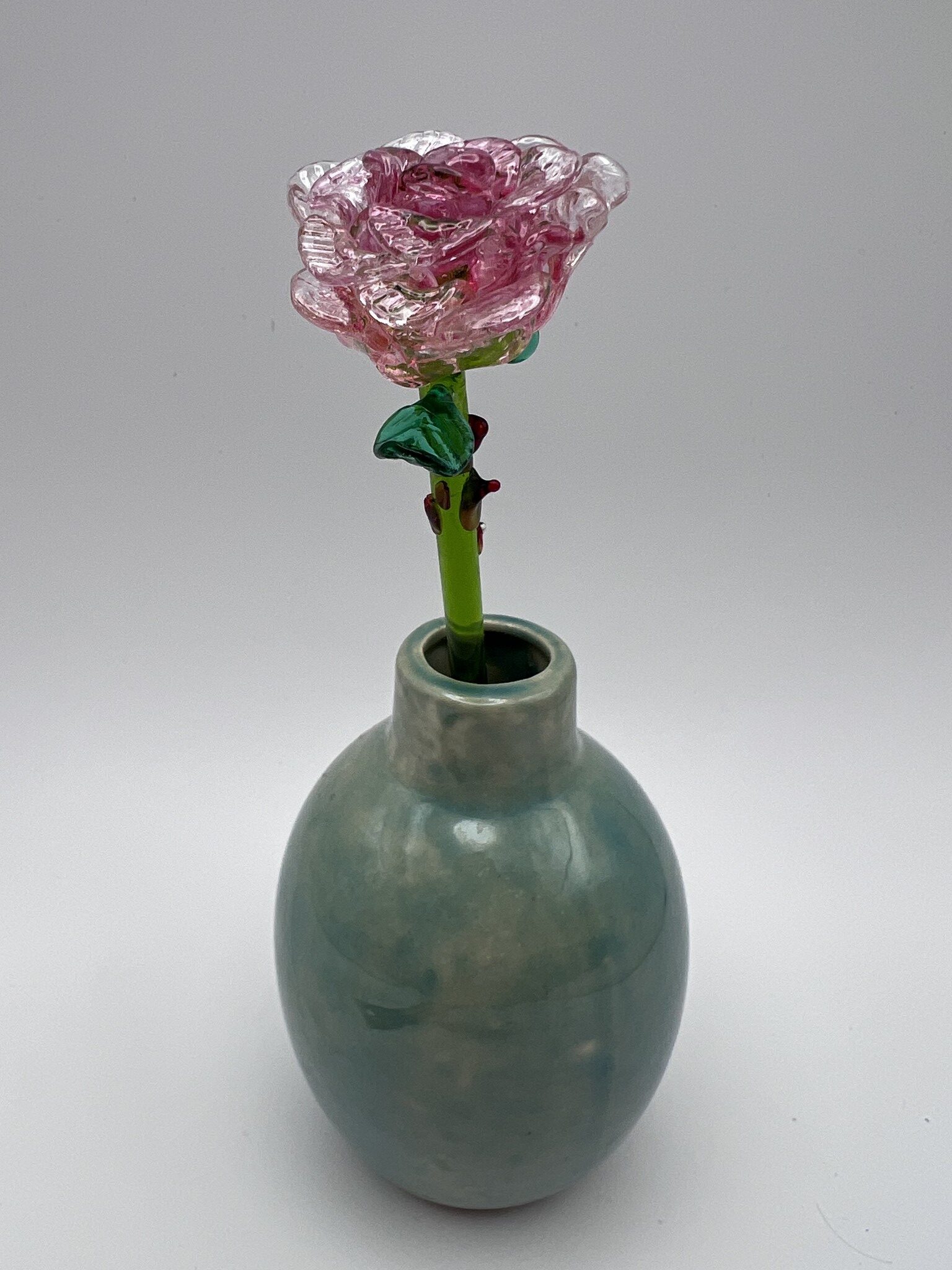 Rose en verre soufflé et rose en verre filé