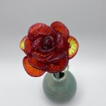 Une rose en verre de Murano fabriquée à la main dans mon atelier de Neuville-aux-Bois près d’Orléans, Loiret. Vive et élégante, cette rose apportera de la couleur et une note raffinée à votre intérieur. Une fleur éternelle qui n’a pas besoin d’entretien et qui ne fanera jamais. Seule ou en bouquet, une jolie décoration en verre, un cadeau original.