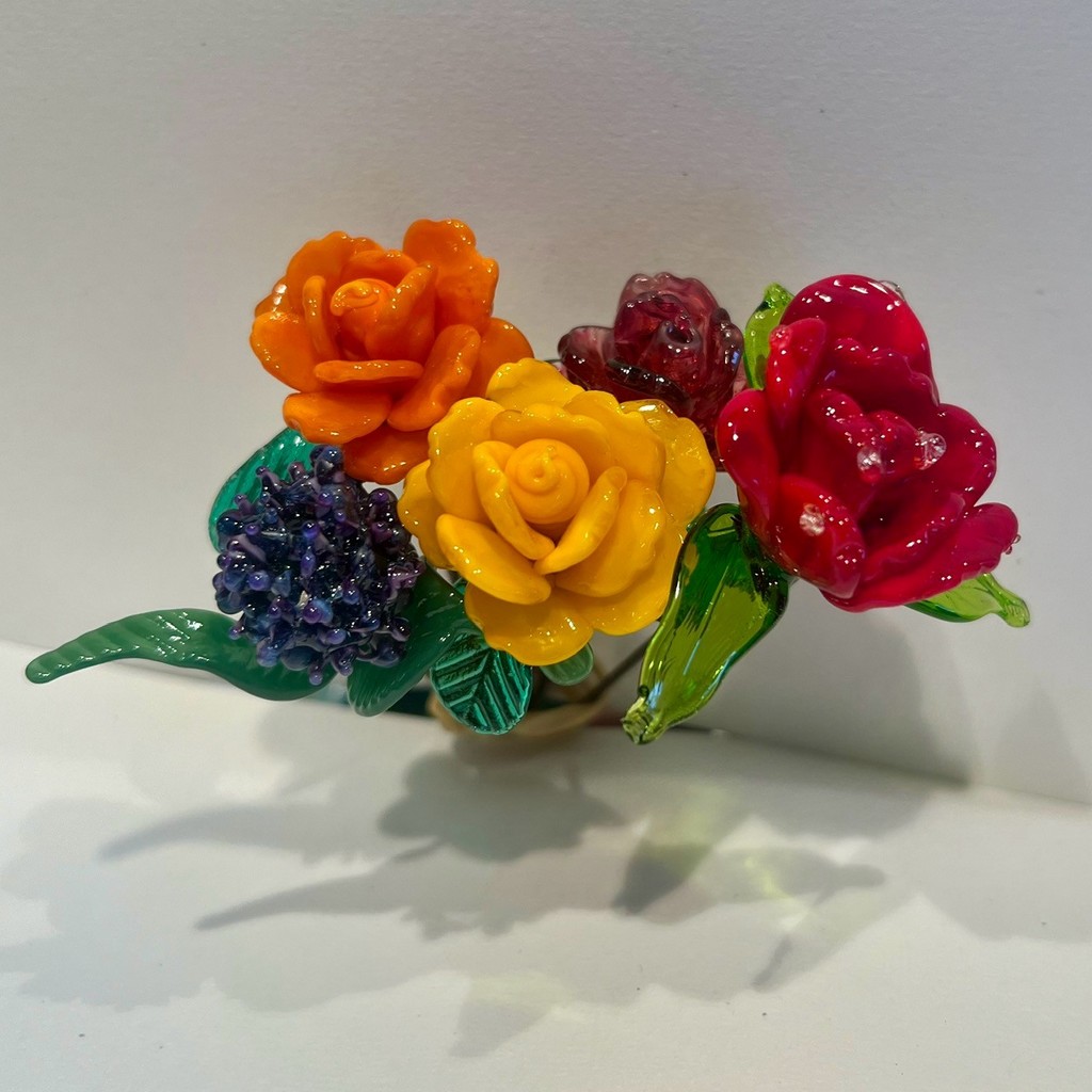 - Notez que contrairement aux fleurs en verre soufflé, qui sont creuses, les fleurs en verre filé sont en verre plein.