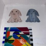 • Je découpe chaque morceau de verre à la main à l’aide d’un coupe-verre et de pinces puis les dispose en fonction du motif souhaité.