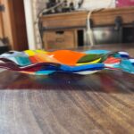 Ce plat est un assemblage de chutes de verre de Murano cuit dans un four à haute température. C’est la technique du fusing. Ce plat multicolore artisanal été vendu mais je peux le reproduire si cela vous intéresse. Les couleurs, la taille et les formes de chaque chute ne seront peut-être pas tout à fait les mêmes. Mais pas d’inquiétude : je fabrique, je propose, et vous le prenez seulement s’il vous plait ! Alors si envie d’un plat multicolore artisanal et bien contactez-moi !