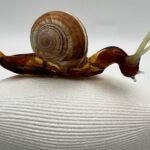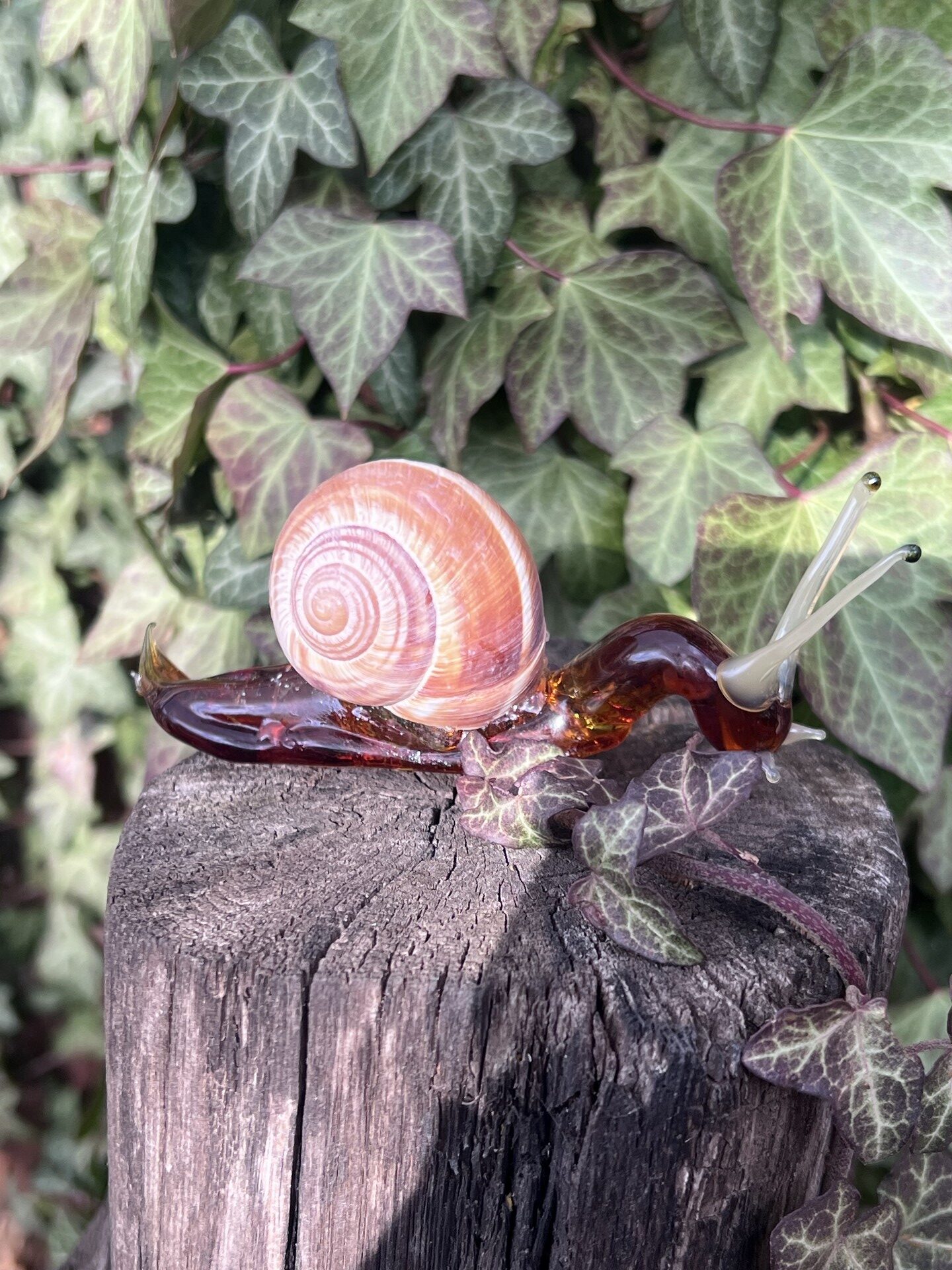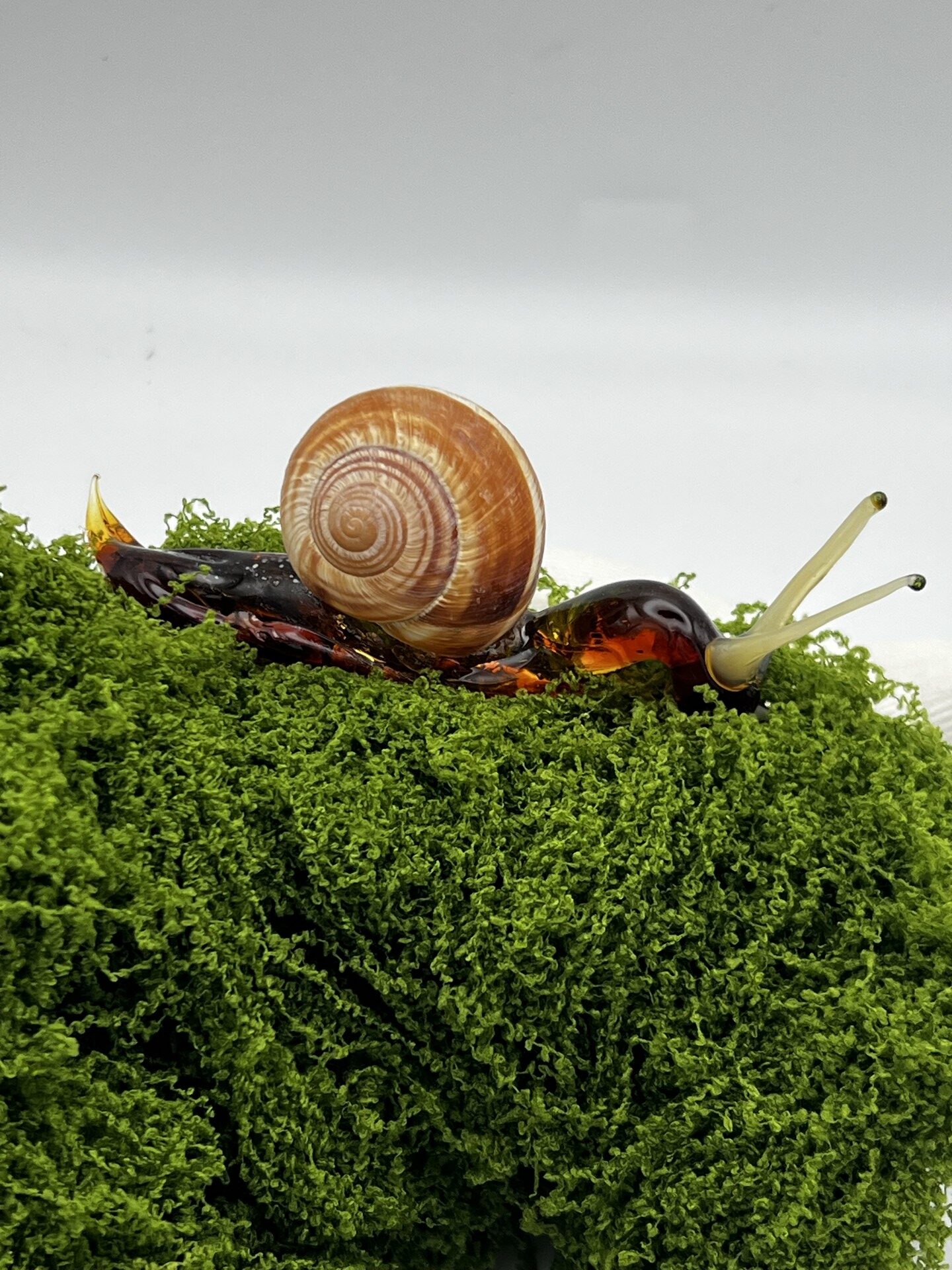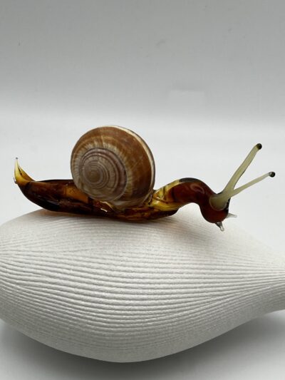 Escargot en verre tête basse, verre borosilicate couleur ambre foncé