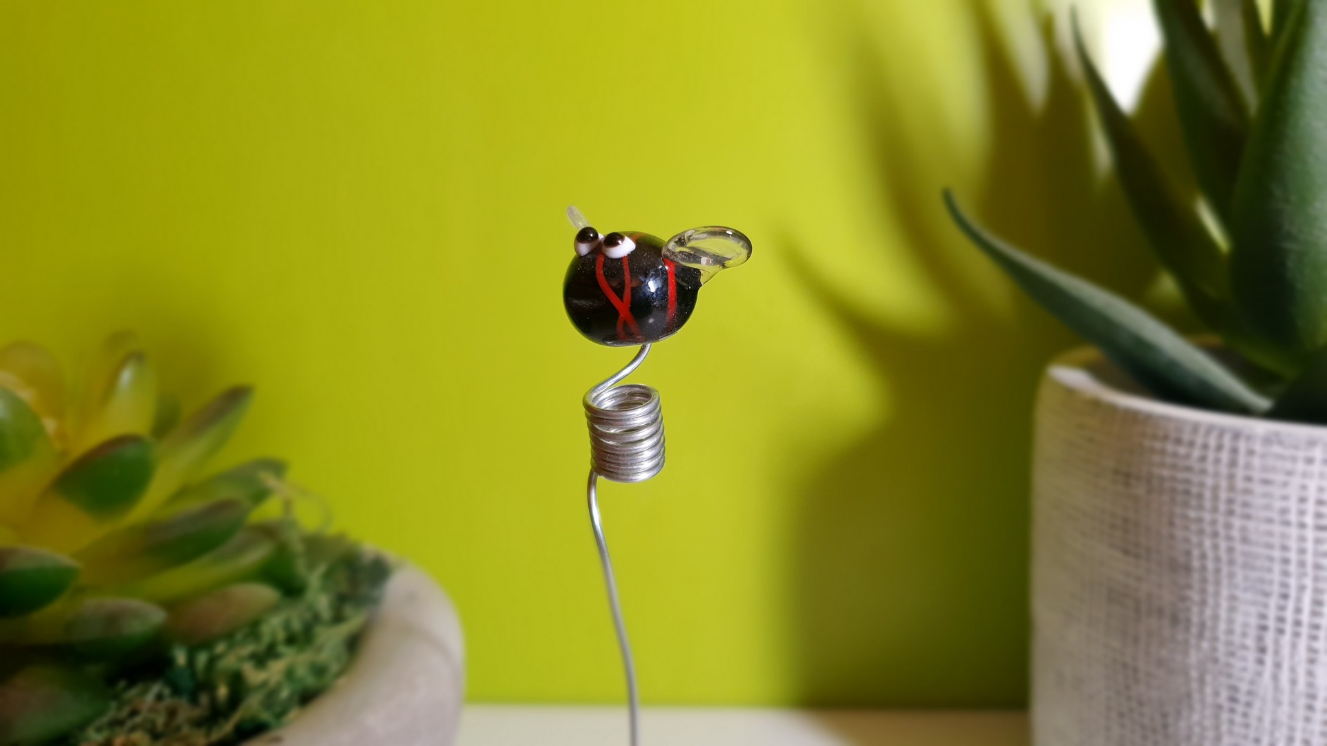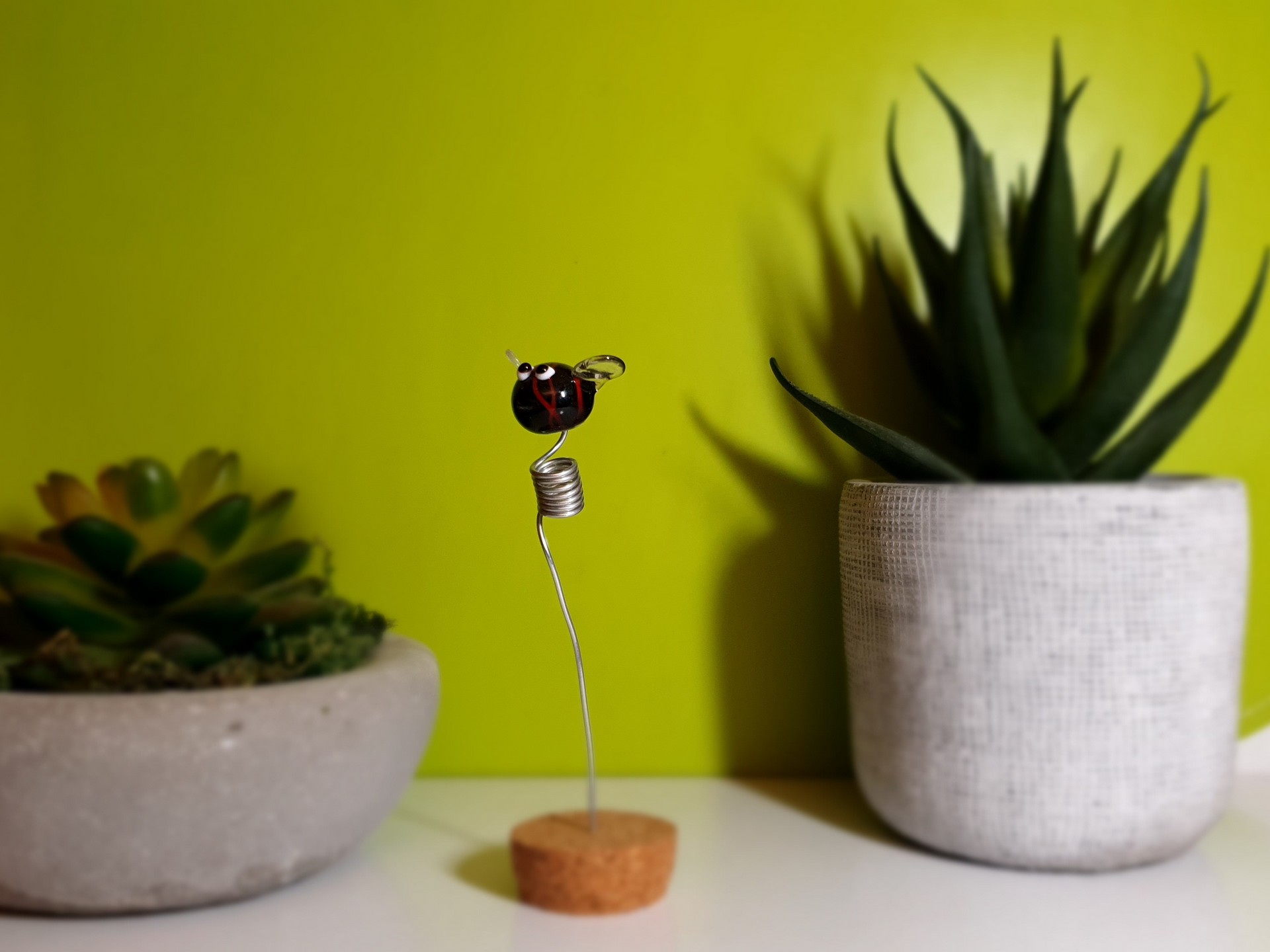 Figurines en verre de Murano petite abeille 2x2cm sur tige de 10cm