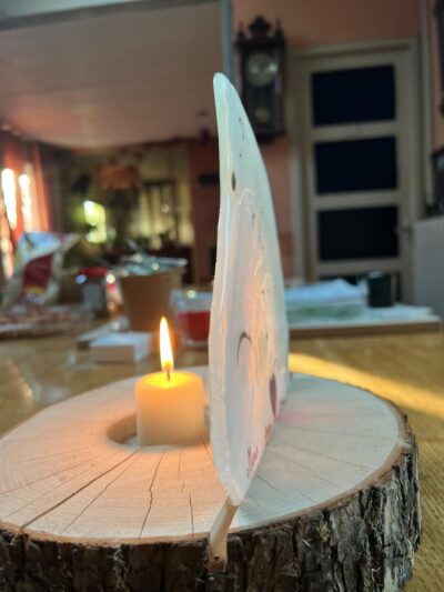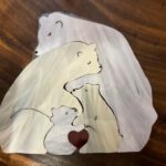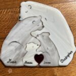Une adorable famille d’ours polaire avec prénoms personnalisés. Fabriqué à la main dans mon atelier de Neuville-aux-Bois près d’Orléans, Loiret. Ce photophore en verre fusionné diffusera chez vous une lumière douce et tamisée. Un emplacement est prévu sur son socle en bois de 18cm de diamètre afin d’accueillir une bougie. Une jolie décoration, un cadeau original. NB: en décoration d’intérieur, un photophore est un objet destiné à recevoir une bougie ou une veilleuse.