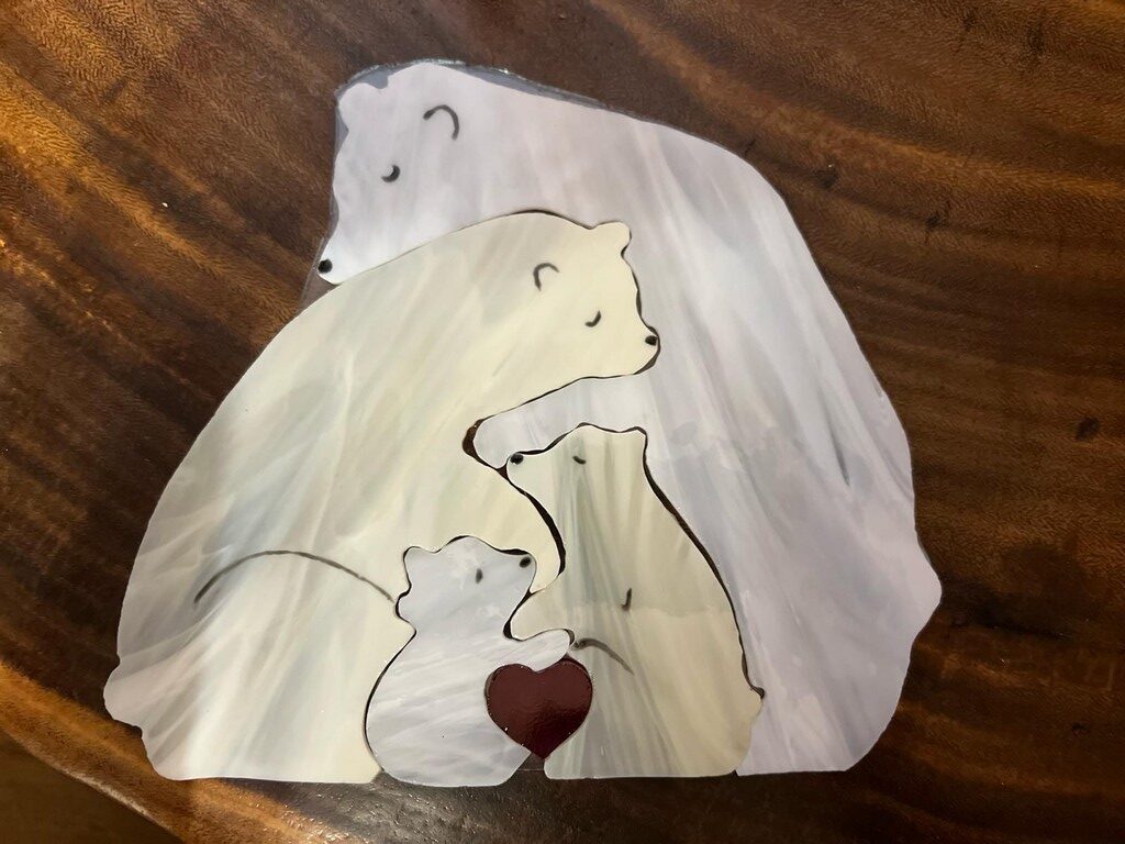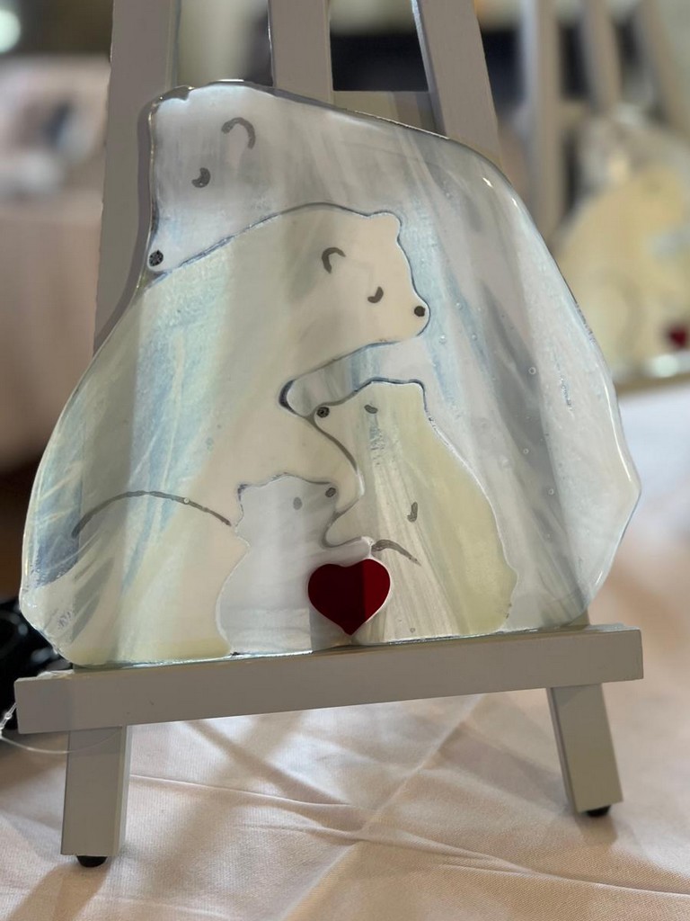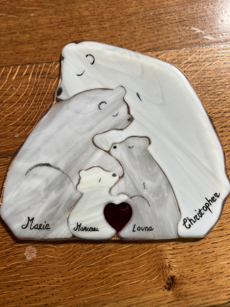 - Une adorable famille d’ours polaires en verre fusionné diamètre 18cm