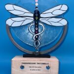 La libellule est associée à la flexibilité et à la capacité de s’adapter aux circonstances changeantes. Elle ne recule jamais face à un obstacle, préférant le contourner ou trouver un autre chemin. Cela en fait un symbole de persévérance et de résilience. Le bâton d’Asclépios enroulé d’un serpent est un symbole traditionnel de la médecine et de la profession médicale.
