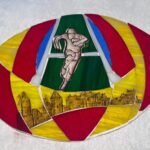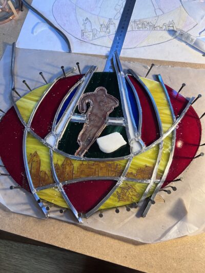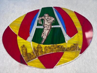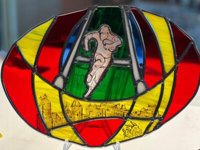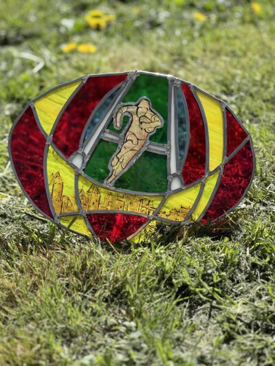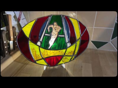 Ce vitrail rugby a été réalisé avec la technique Tiffany