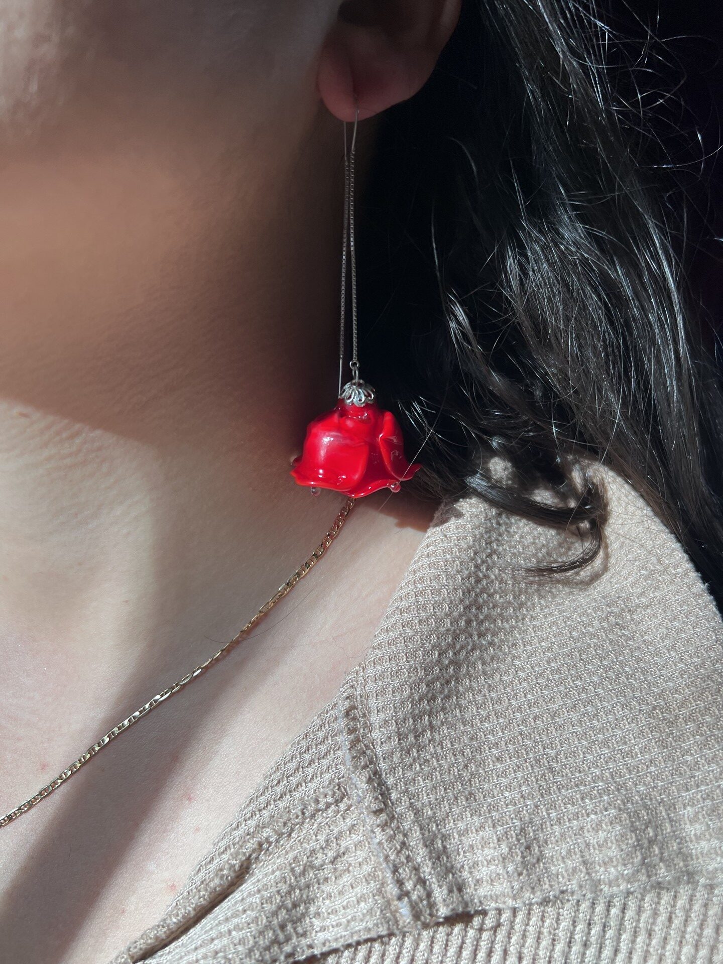 Hauteur totale rose et chaine compris environ 70mm